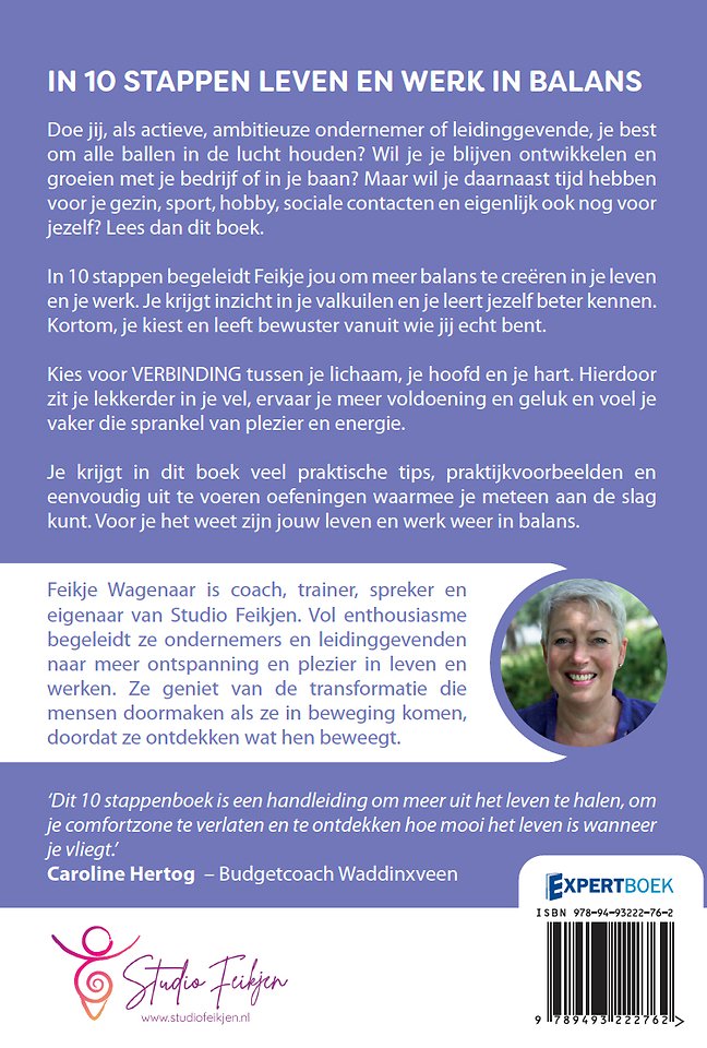 In 10 stappen begeleidt Feikje jou om meer balans te creëren in je leven en je werk. Je krijgt inzicht in je valkuilen en je leert jezelf beter kennen. Kortom, je kiest en leeft bewuster vanuit wie jij echt bent.