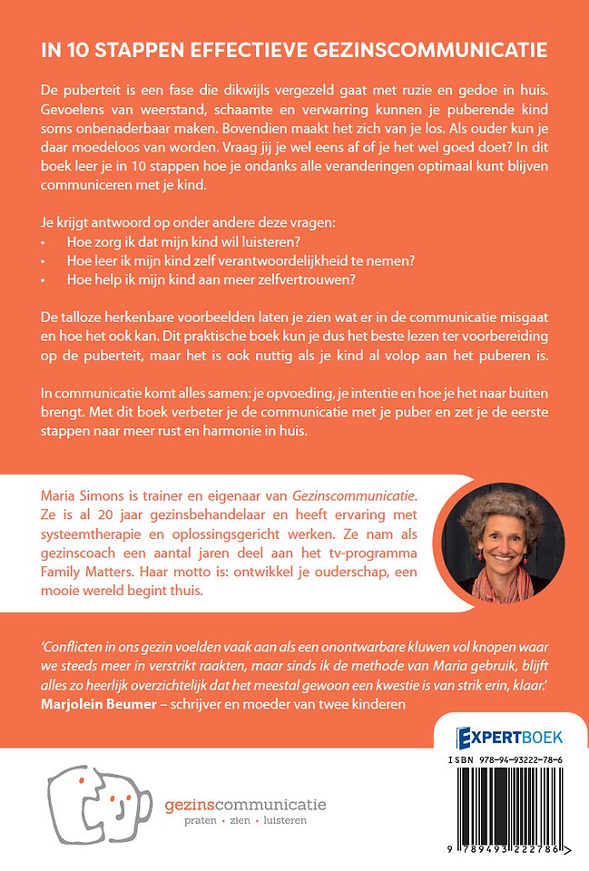 In communicatie komt alles samen: je opvoeding, je intentie en hoe je het naar buiten brengt. Met dit boek verbeter je de communicatie met je puber en zet je de eerste stappen naar meer rust en harmonie in huis.