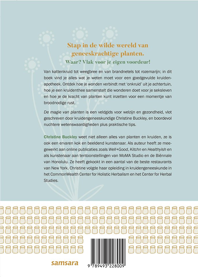 Christine Buckley weet niet alleen alles van planten en kruiden, ze is ook een ervaren kok en beeldend kunstenaar. Als auteur heeft ze meegewerkt aan online publicaties zoals Well+Good, Kitchn en Healthyish en als kunstenaar aan tentoonstellingen van MoMA Studio en de Biënnale van Honolulu. Ze heeft gekookt in een aantal van de beste restaurants van New York. Christine kreeg haar opleiding in kruidengeneeskunde in het CommonWealth Center for Holistic Herbalism en het Center for Herbal Studies.