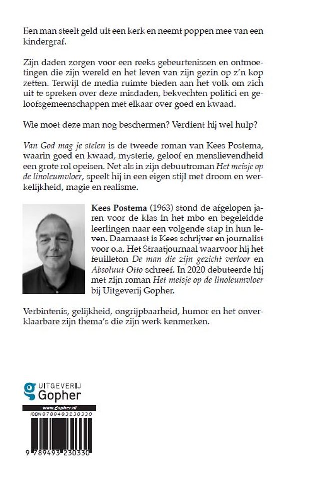 Van god mag je stelen is de tweede roman van Kees Postema, waarin goed en kwaad, mysterie, geloof en menslievendheid