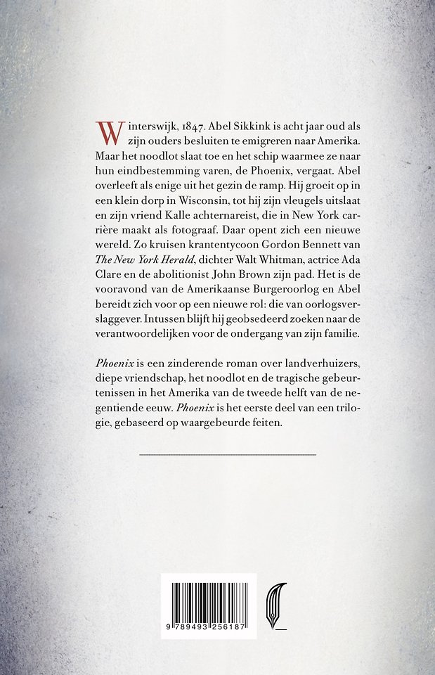 Phoenix is een zinderende roman over landverhuizers, diepe vriendschap, het noodlot en de tragische gebeurtenissen in het Amerika van de tweede helft van de negentiende eeuw. Phoenix is het eerste deel van een trilogie, gebaseerd op waargebeurde feiten.