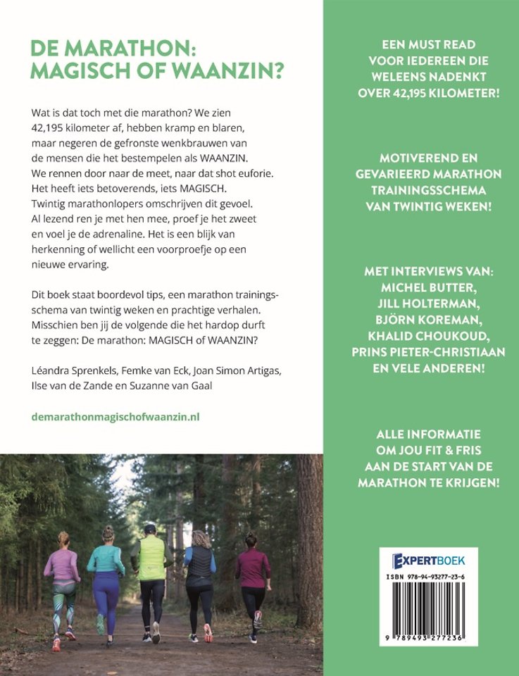 Dit boek staat boordevol tips, een marathon trainingsschema van twintig weken en prachtige verhalen.