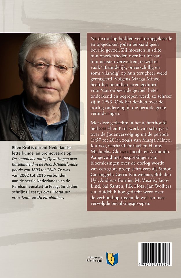 Met deze gedachte in het achterhoofd herleest Ellen Krol werk van schrijvers over de Jodenvervolging uit de periode 1957 tot 2019, zoals van Marga Minco, Ida Vos, Gerhard Durlacher, Hanny Michaelis, Clarissa Jacobi en Armando. Aangevuld met besprekingen van bloemlezingen over de oorlog wordt van een grote groep schrijvers als Simon Carmiggelt, Gerrit Kouwenaar, Bob den Uyl, Andreas Burnier, M. Vasalis, Jacov Lind, Sal Santen, F.B. Hotz, Jan Wolkers e.a. duidelijk hoe gedacht werd over de verhouding tussen de wel- en niet-vervolgde bevolkingsgroepen.