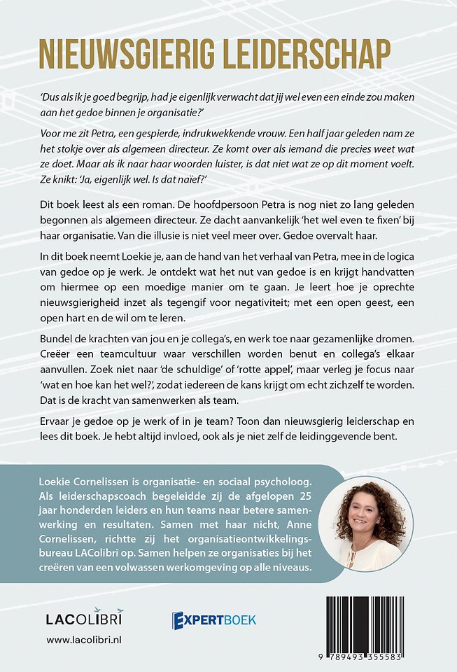 Loekie Cornelissen prikkelt je nieuwsgierigheid en biedt praktische handvatten in ‘Nieuwsgierig Leiderschap – Eerste hulp bij gedoe op je werk’. Het boek combineert een boeiende businessroman met theorie en toepasbare inzichten.