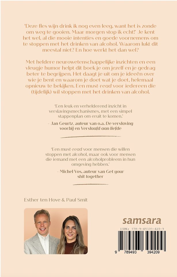 ‘Een must-read voor mensen willen stoppen met alcohol, maar ook voor mensen die iemand met een alcoholprobleem in hun omgeving hebben.’ – Michel Vos, auteur van 'Get your shit together'