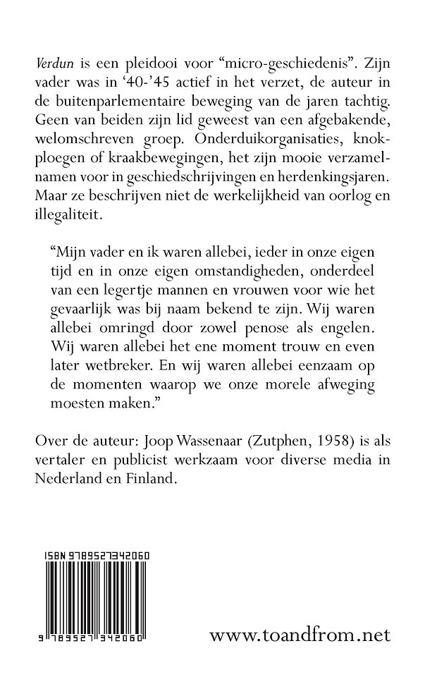 Verdun is een pleidooi voor “micro-geschiedenis”. Zijn vader was in '40-'45 actief in het verzet, de auteur in de buitenparlementaire beweging van de jaren tachtig. Geen van beiden zijn lid geweest van een afgebakende, welomschreven groep. Onderduikorganisaties, knokploegen of kraakbewegingen, het zijn mooie verzamelnamen voor in geschiedschrijvingen en herdenkingsjaren. Maar ze beschrijven niet de werkelijkheid van oorlog en illegaliteit.