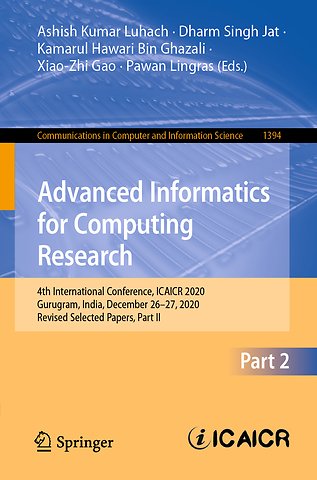 This two-volume set (CCIS 1393 and CCIS 1394) constitutes selected and revised papers of the 4th International Conference on Advanced Informatics for Computing Research, ICAICR 2020, held in Gurugram, India, in December 2020.