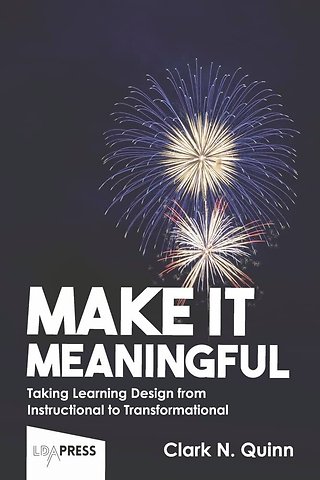 'Make It Meaningful' covers underlying principles including surprise, story, and emotion, and pulls them together to create a coherent approach. The author also covers the implications for learning elements and a design process. With concise prose and concrete examples, this book provides the framework to take your learning experience designs from instructional to transformational. With concise prose and concrete examples, this book provides the framework to take your learning experience designs from instructional to transformational!