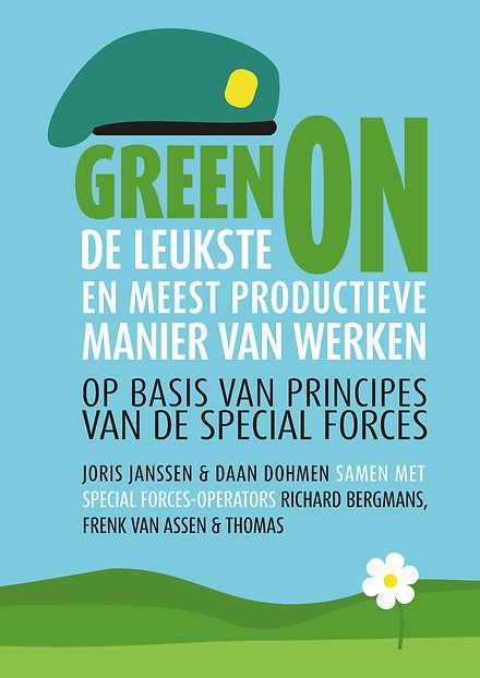 Met Green On stel je de kracht van mensen boven de processen. En dat werkt overal en altijd. In dit boek delen dr. Joris Janssen en prof. dr. ir. Daan Dohmen en de special forces-operators Richard, Thomas en Frank het geheim van hun succes aan de hand van vijf principes: samenwerken, flow, eenvoud, vertrouwen en aanpassingsvermogen. Samen zijn ze goed voor vijftig jaar ervaring in het leiden en trainen van mensen bij start-ups, bij corporates en in gevechtssituaties.
