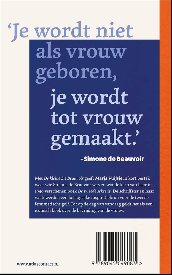 Marja Vuijsje, begenadigd schrijfster, behorend tot de generatie van de tweede feministische golf, lezer en herlezer van het oeuvre van De Beauvoir en van De tweede sekse in het bijzonder, geeft in kort bestek weer wie De Beauvoir was en wat de kern van vooral dit bijzonder invloedrijke boek is.