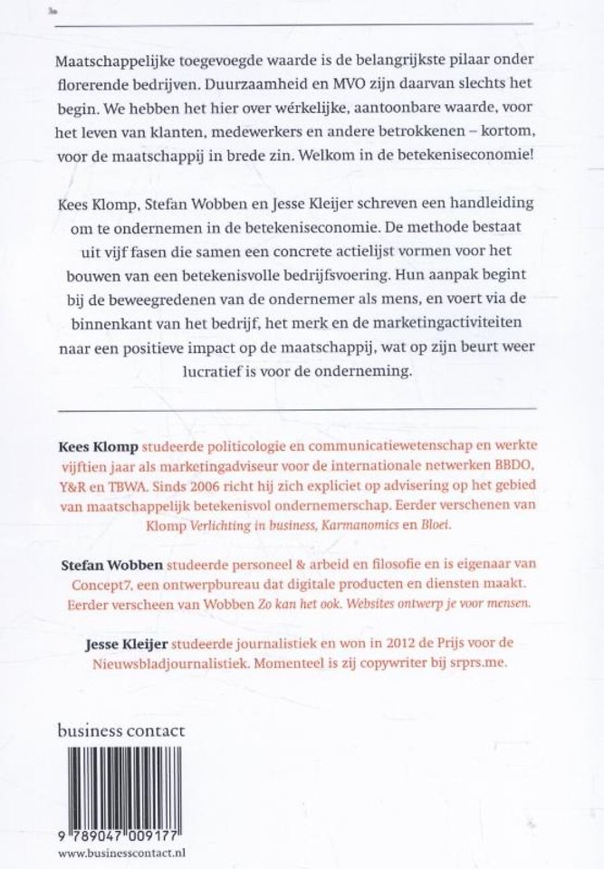 Kees Klomp, Stefan Wobben en Jesse Kleijer schreven een handleiding om te ondernemen in de betekeniseconomie. De methode bestaat uit 5 fasen die samen een concrete actielijst vormen voor het bouwen van een betekenisvolle bedrijfsvoering.
