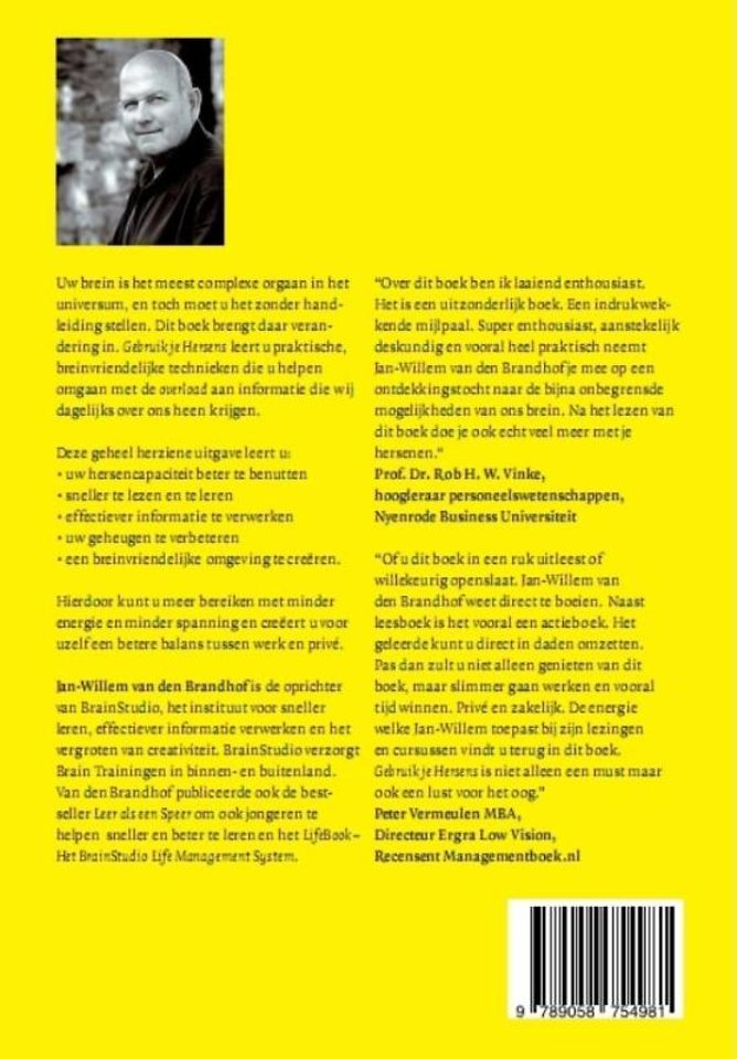 Meer over Jan-Willem van den BrandhofUw brein is het meest complexe orgaan in het universum, maar er is geen handleiding bijgeleverd. Door de enorme overload aan informatie die wij dagelijks over ons heen krijgen, is het noodzakelijk om breinvriendelijke technieken te leren. Technieken die het mogelijk maken sneller nieuwe kennis tot ons te nemen, te verwerken, in ons brein op te slaan en te reproduceren.