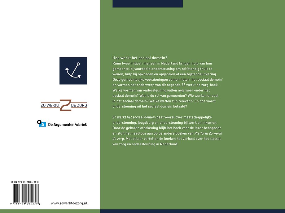 Zó werkt het sociaal domein gaat vooral over maatschappelijke ondersteuning, jeugdzorg en ondersteuning bij werk en inkomen. Door de gekozen afbakening blijft het boek voor de lezer behapbaar en sluit het naadloos aan op de andere boeken van Platform Zó werkt de zorg. Met elkaar vertellen de boeken het verhaal over het stelsel van zorg en ondersteuning in Nederland.