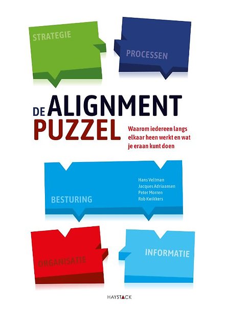 Ja, inderdaad dit is mijn/ons eigen boek! Waar haal ik het lef vandaan om dit werk op nemen in de lijst van grote namen hierboven? Welnu, ik schreef al eerder dat ik graag veel meer had geleerd op de Universiteit en teleurgesteld was over de minimale handvaten en bruikbare kennis die je mee krijgt. Ik verliet de universiteit met een diploma in de hand en een scheepslading aan open vragen in het hoofd. En ik zocht boeken om dat gat op te vullen. Negen van die boeken heb ik hierboven genoemd. De tiende hebben we zelf geschreven. Ons boek is precies het boek dat ik graag had willen lezen toen ik nog studeerde. Hier staan de antwoorden op (bijna) al die vragen in. Ik heb er 35 jaar over gedaan om die antwoorden te vinden, terwijl ze me die ook gewoon in de collegebanken hadden kunnen mededelen. Waarom draaien sommige organisaties goed en andere niet? Waarom zijn sommige leiders succesvol en andere niet? Hoe komt het dat organisaties zo vaak uiteenvallen in eilandjes waarin het moeilijker is samen te werken met collega’s dan met buitenstaanders? Waarom werken we niet schouder aan schouder met zijn allen samen om de klanten zo goed mogelijk te bedienen tegen minimale uitgaven? Hoe pak je het aan om dit wel voor elkaar te krijgen? Dat staat allemaal in “de AlignmentPuzzel”.