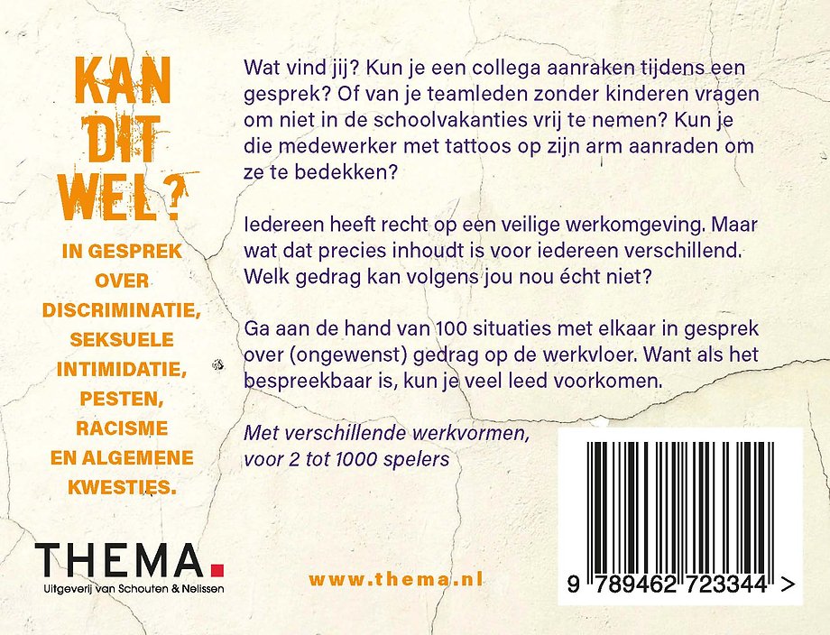 Kan dit wel? is bedoeld voor alle soorten werknemers, op ieder niveau in de organisatie. Je kunt het in grote en kleine groepen spelen. De deelnemers hoeven elkaar niet te kennen.