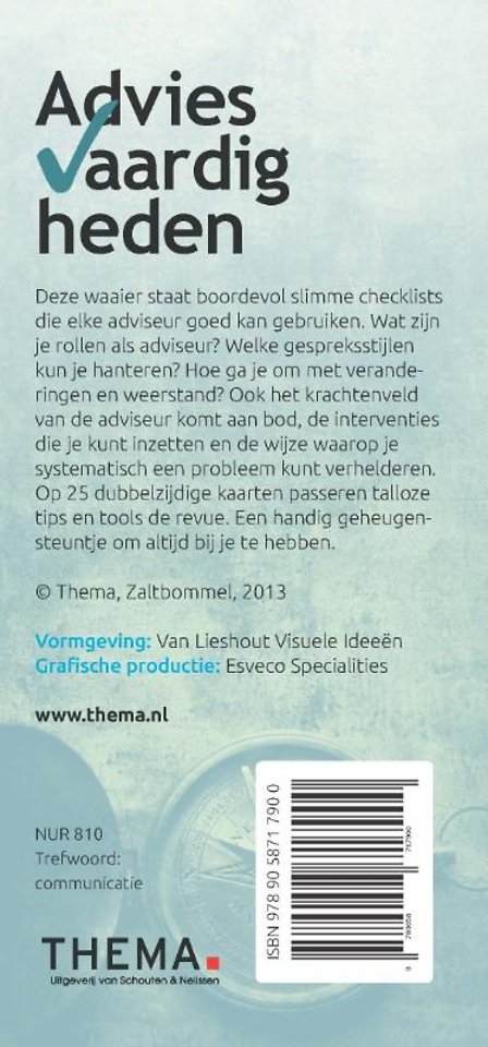 Deze herziene 'Adviesvaardigheden'-waaier staat boordevol slimme checklists die elke adviseur goed kan gebruiken. Wat zijn uw rollen als adviseur? Welke gespreksstijlen kunt u hanteren? Hoe gaat u om met veranderingen en weerstand?